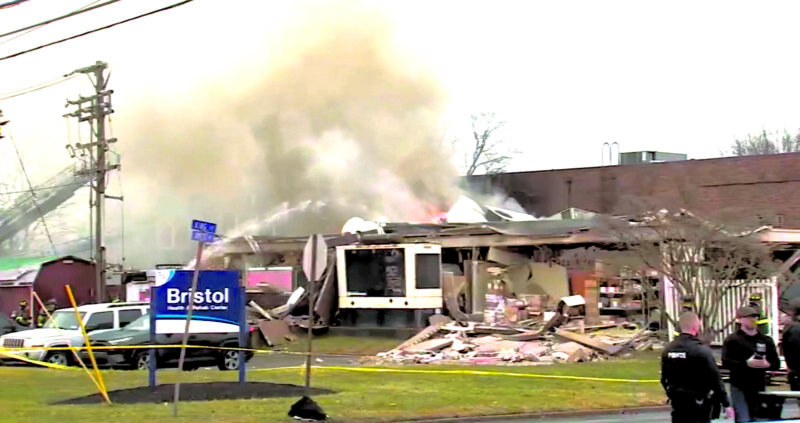 BRISTOL, Pa. (AP) — A thunderous explosion Tuesday at a nursing home just outside Philadelphia killed at least two people, collapsed part of the building, sent fire shooting out and left people trapped inside, authorities said.