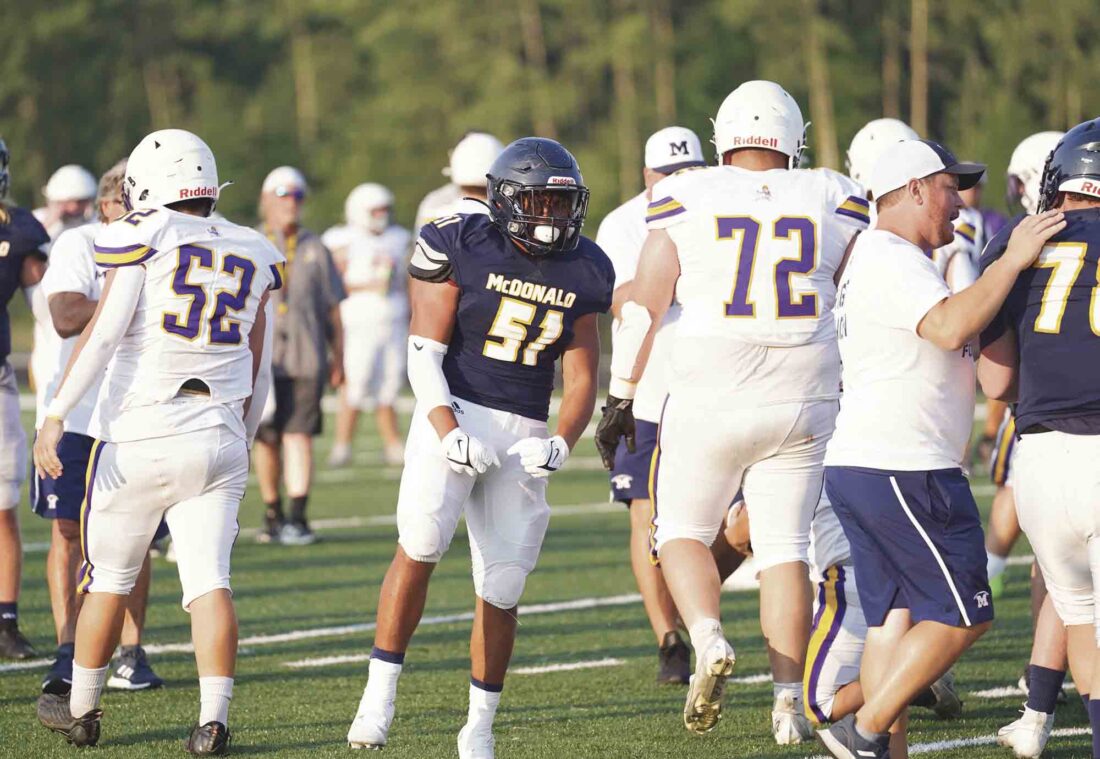 As is usually the case at McDonald, the offensive linemen also will play up front on defense.