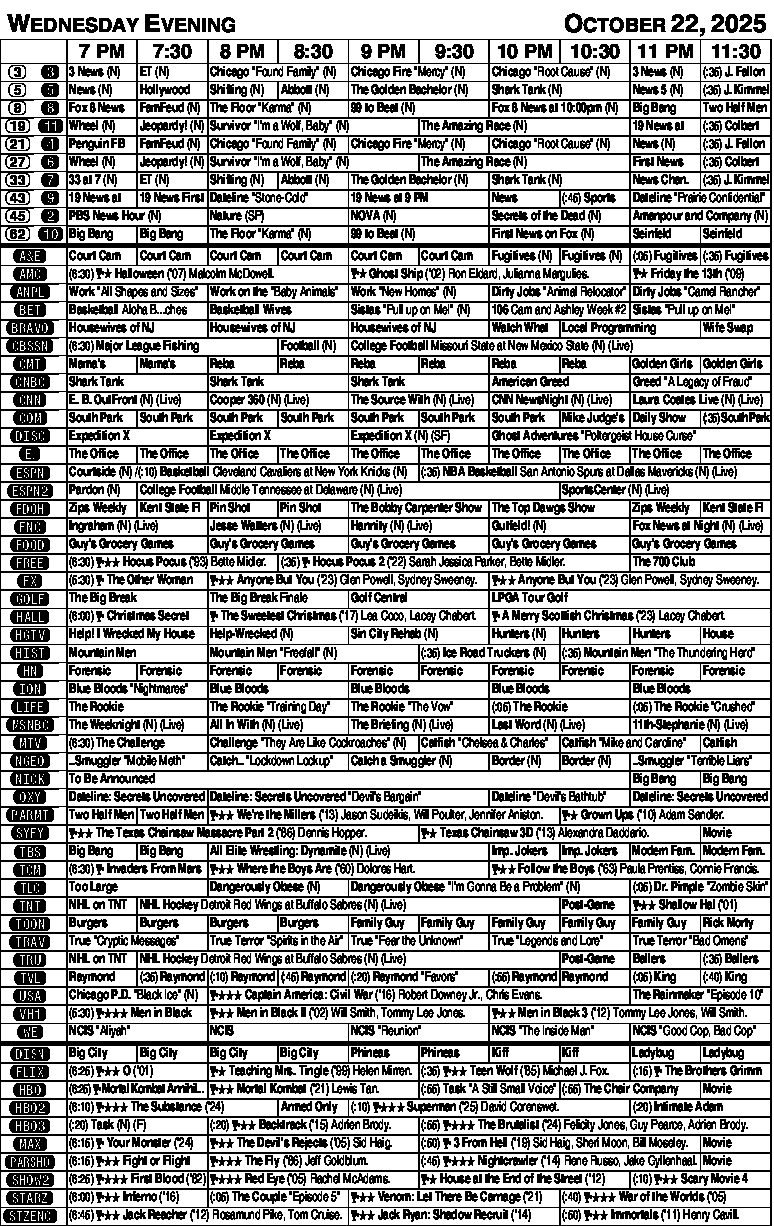 TV listing: Wednesday, October 22, 2025 NewsletterToday's breaking news and more in your inboxEmail(Required) I'm interested in (please check all that apply)(Required) Daily Newsletter Breaking News Obituaries Are you a paying subscriber to the newspaper?(Required) Yes No Lifestyles Set clear boundaries at Thanksgiving dinners DEAR ANNIE: Every year, Thanksgiving turns into a tug-of-war in my family. My siblings and I all live within ... Low-dose aspirin can pose dangers DEAR DR. ROACH: My wife and I are both healthy and in our 70s. At 5 feet, 9 inches tall, we are both at a ... Bridge by Steve Becker It is obviously better to give yourself two chances to make a contract instead of just one. It is important to keep ... TV listing: Wednesday, October 22, 2025 Freeze, pickle or cook plant scraps My beets were slow to grow this year, so I bought a bunch at the farmers’ market. I was taken aback when the ... Wine 101: Speak with your mouthfeel Every industry has its jargon. In the wine business, to understand some wine words, one- or two-sentence ... Starting at $3.23/week. Subscribe Today