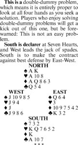 We offer no opinion about South’s play, which might have turned out right, but you have to hand it to Ehrlenbach for concocting a scheme that gave South a chance to go wrong.