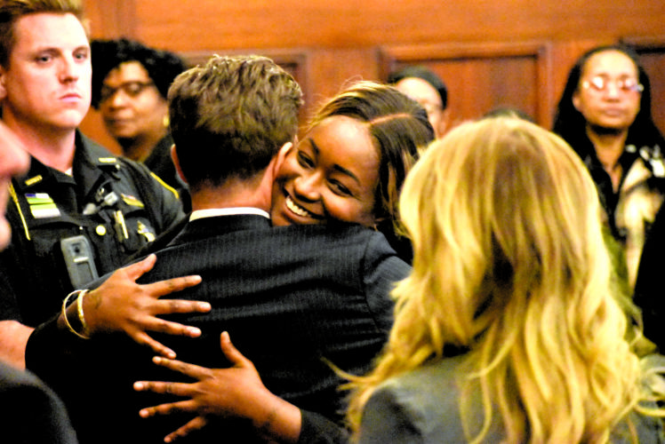 She turned to her attorney, Frank Cassese, and hugged him, a look of ...