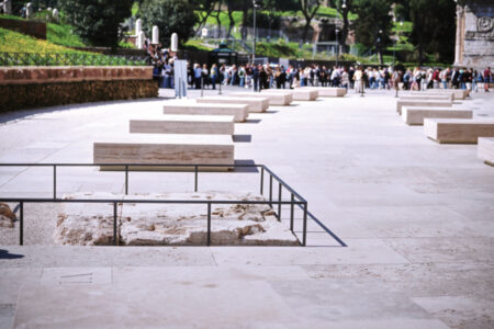 “These blocks of travertine marble are placed, located exactly where the pillars, the original pillars were based,” said Italian architect Stefano Boeri, who designed the piazza. “The idea we had was to give back to the public the perception of the proportion of the arcades and the proportion of the vaults of the arches that were used to enter in the center of the Colosseum.”
