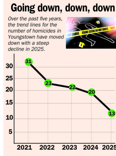 The number dropped to 13 homicides in 2025, the lowest number since at least 1967, the earliest year ...