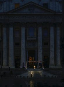 The prayer service was one of several scheduled over the next few weeks that will see the 83-year-old pontiff virtually solo in the square or celebrating Masses for Holy Week and Easter Sunday in the shelter of St. Peter’s Basilica instead of outdoors in the company of tens of thousands of faithful.