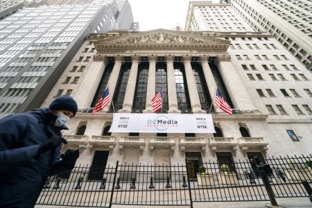 Pedestrians pass the New York Stock Exchange in New York. Major stock indexes are opening modestly higher on Wall Street as investors turn their focus to some strong earnings reports from Big Tech companies and hopes for getting more economic stimulus passed in Washington. The S&P 500 was up 0.3 percent in the early going this morning. (AP Photo/John Minchillo)