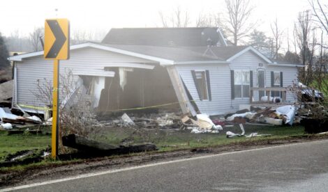 A woman was killed and her husband injured when a truck drove into this Knox School Road home in January. (Morning Journal file photo by Ron Firth)