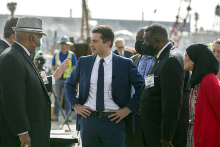 Buttigieg’s announcement seeks to build upon recent moves by the Transportation Department to reduce supply chain congestion, such as by allowing port authorities to redirect leftover money from grant projects. For example, the Georgia Ports Authority is using $8 million to convert its inland facilities for the port of Savannah into container yards, freeing up dock space and speeding the flow of goods to their final destinations. Buttigieg last Friday toured the port, which his department says has seen the number of ships waiting at anchor fall from over 30 to six last week, while long dwelling containers have been cut in half.