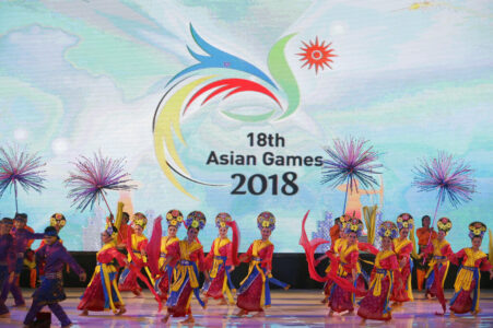 Traditional dancers perform during the unveiling of the logo of the 18th Asian Games in Jakarta, Indonesia on Sept. 9, 2015. Less than three months after Beijing hosted the Winter Olympics and Paralympics, reports in China today said this year's Asian Games are being postponed because of concerns over the spreading omicron variant of COVID-19 in the country. (AP Photo/Tatan Syuflana, File)