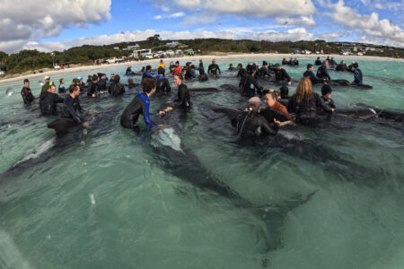 The incident was reminiscent of one last September, in which some 200 pilot whales died after a pod stranded itself on the remote west coast of the island state of Tasmania, off Australia’s southeastern coast.
