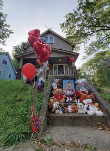 Neighbors and loved ones set up a memorial for Rowan Sweeney, 4, who was killed Monday morning in a shooting at 111 Perry St., Struthers. The suspect, Kimonie Bryant, was in municipal court Wednesday and entered no plea to aggravated murder.