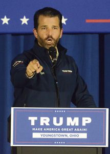 YOUNGSTOWN — Donald Trump Jr., the president’s eldest son, said the election comes down to a choice between his father, who is fighting for working-class Americans, and Democrat Joe Biden, who he described as corrupt, out of touch and ineffective.