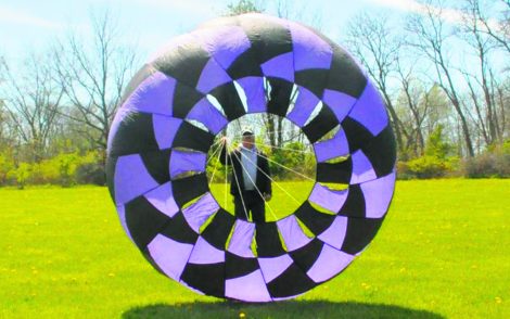 Dave Downey of Boardman flies a bowl kite in Canfield on Saturday afternoon at the Loghurst Museum. The Mahoning Valley is invited to fly kites again today in an open field next to the structure at 3967 Boardman-Canfield Road from noon to 4 p.m. The event is free. Staff photo / Ashley Fox