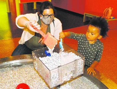 .Nicole Hoff, originally from Poland, Ohio and now living in the Democratic Republic of the Congo, left, and her daughter Malaika Hoff Kabuya, 2, visit OH WOW and learn while playing at one of the many exhibits at the center...Staff photo/ R. Michael Semple