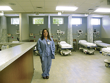 Staff photo / J.T. Whitehouse Administrator Amanda Lutz shows off the 17-bed recovery room at Mercy Health’s new outpatient surgery center in Canfield.