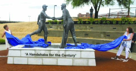 YOUNGSTOWN — The first interracial handshake in organized baseball took place in Roosevelt Stadium in 1946, and in 2021, its ever-present symbolism and meaning was eternalized in downtown Youngstown.