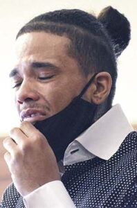 Staff file photo / Ed Runyan Yarnell Green cries during a hearing in March 2021, when he was arraigned in Youngstown Municipal Court on a weapons charge involving a gun found in a car. The charge was dismissed in July after he completed a diversion program. He cried while talking to a magistrate about his co-defendant in the case, girlfriend Alexis Schneider, who was Rowan Sweeney’s mom.
