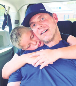 Submitted photo Chris Yozwiak, a 1992 Boardman High School graduate, enjoys a monent with with his son, Brady, 9. Yozwiak of Hudson has been diagnosed with amyotrophic lateral sclerosis or Lou Gehrig’s disease and has lost his ability to speak. A benefit spaghetti dinner to help his family with medical expenses is planned Friday at Boardman High School.