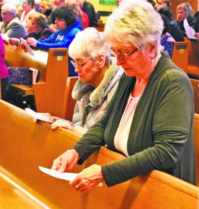 Correspondent photo / Sean Barron... Longtime close friends Margaret Cole of Boardman and Karen Boros of Austintown, attend a prayer service Sunday at St. Columba Cathedral to remember St. Stanislaus Parish. , which closed in late 2021. Both women attended school at the parish that opened in 1902.