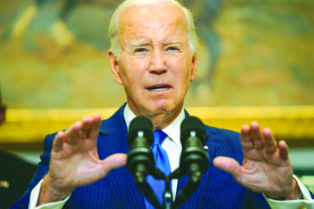 President Joe Biden, center, delivers remarks on recovery efforts for the Maui wildfires and the response to Hurricane Idalia, in the Roosevelt Room of the White Houseon Wednesday. In a statement Wednesday, he also praised economic recovery in the Youngstown-Warren-Boardman metro area. ....(AP Photo/Evan Vucci)