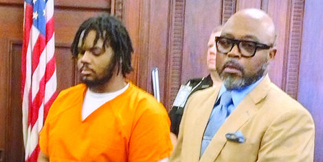 Staff photo / Dan Pompili ... Andre McCoy, left, stands with his attorney, Walter Madison, on Wednesday in Mahoning County Common Pleas Court. McCoy accepted a plea agreement in the 2020 shooting death of 4-year-old Rowan Sweeney. in Struthers. McCoy, 22, pleaded guilty Tuesday to murder, a reduced charge.
