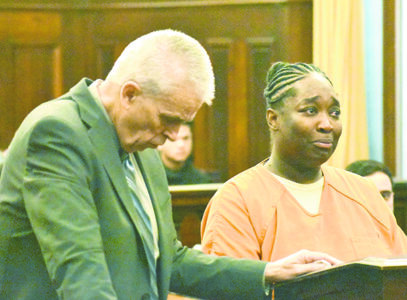 Staff photo / Ed Runyan Shamara Green tells Mahoning County Common Pleas Court Judge R. Scott Krichbaum how bad she feels about shooting a 13-year-old girl to death in May on the South Side. At left is her attorney, Mark Lavelle. Krichbaum on Wednesday sentenced Green to seven to nine years in prison on involuntary manslaughter with a gun specification.