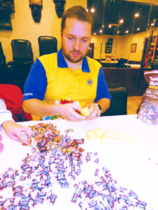 Joe Cassata, Niles Lions Club treasurer, fills plastic Easter eggs Thursday at Amen’s Corner in Girard for its annual egg hunt for children at noon Saturday at Waddell Park in Niles. The club members filled 3,000 plastic eggs.
