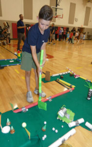 Parker Ramsey 9, a third-grader at Girard City Schools, shows his family and others the miniature golf course he made during the summer program.