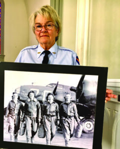 Correspondent photo / Sean Barron Marilyn Mong of Leetonia holds a photograph of four Women Airforce Service Pilots before a lecture she gave Saturday in the old St. James Episcopal Church in Boardman Park on the important roles the WASPs played during World War II. Second from the left is Margaret Kirchner of Youngstown.