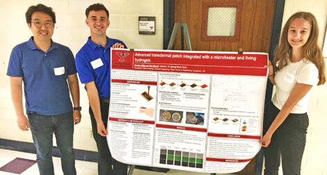 Kate Blumel and Karsten Miller, Poland Seminary and Canfield High students, respectively, delved into experimenting with an advanced transdermal patch with a micro-heater and living hydrogels, which are three-dimensional networks of polymers capable of absorbing and retaining large quantities of water or biological fluids, which makes them highly flexible.