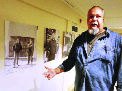 Staff photo / Andy Gray Youngstown artist Tony Nicholas talks about the process of picking the subjects and photographing them for his project “This Is Youngstown,” which will be on display through Feb. 1, 2026, at the Mahoning Valley Historical Society’s Tyler History Center.