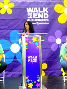 Mandy Miles, a walk committee member, volunteer and advocate, shared her personal connection to the cause. Having lost her grandmother and aunt to Alzheimer’s, Miles has been involved for more than a decade, starting as a team captain in Trumbull County and later coming face to face with state legislators for policy changes in Columbus.