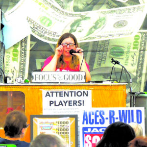 As part of the night, Aces Are Wild pull tab cards are sold. From those cards, a participant is chosen to select a window from the Aces Are Wild board with the potential to see “sorry” or “jackpot,” which on Friday was more than $30,000.