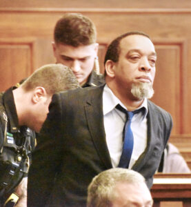 Staff photo/Ed Runyan Thomas Steele was handcuffed when guilty verdicts were read Thursday in Mahoning County Common Pleas Court on three counts of gross sexual imposition and one count of disseminating matter harmful to juveniles.