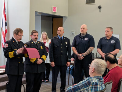 LIBERTY — A regular trustees meeting was a special one for some township first responders as their fire chief recognized them — and members of neighboring departments — for their service.