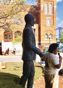 In another activity, Bailey and the others gathered around an outdoor statue of the Rev. Fred L. Shuttlesworth, a firebrand Baptist minister who was a key player in the city’s integration efforts, and who battled frequently with Eugene “Bull” Connor, the city’s racist public safety director who ordered the attack in nearby Kelly Ingram Park of marchers with fire hoses and German shepherds.