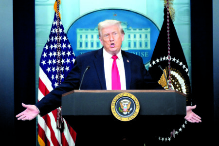 “We slashed tremendous numbers from federal payroll,” Trump said during the press briefing, adding that millions of federal workers were terminated by the Trump administration.