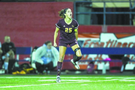 Correspondent photo / Robert Hayes South Range junior Gabby Lamparty reacts after her game-winning goal against Crestview on Oct. 29 at Bo Rein Stadium in Niles.