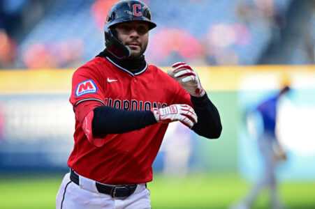 Martinez led off Cleveland’s three-run fifth when the wind took what looked like a routine fly to right and turned it into a triple. He scored on a sacrifice fly, and Kwan’s homer to right later in the inning made it 4-0.