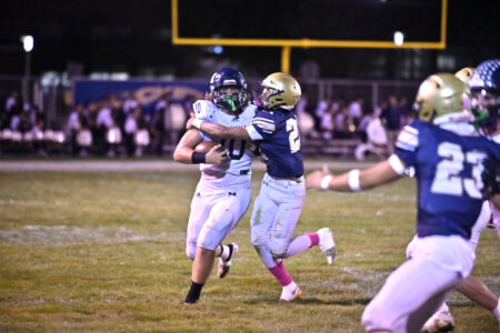 Now trailing, Lowellville was quick to respond, making it down to the 12-yard line with a chance to re-tie the game. But Willrich’s pass wound up in the hands of McDonald sophomore Quinn Schmidt, who intercepted the ball in the end zone, and carried it out to the 29-yard line, giving the Blue Devils space to kill the clock.