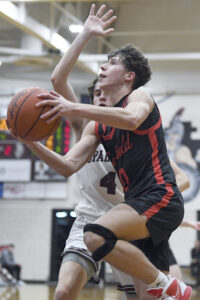 Correspondent file photo / Robert Hayes Canfield’s Dom Cruz goes up for basket against Boardman last season.
